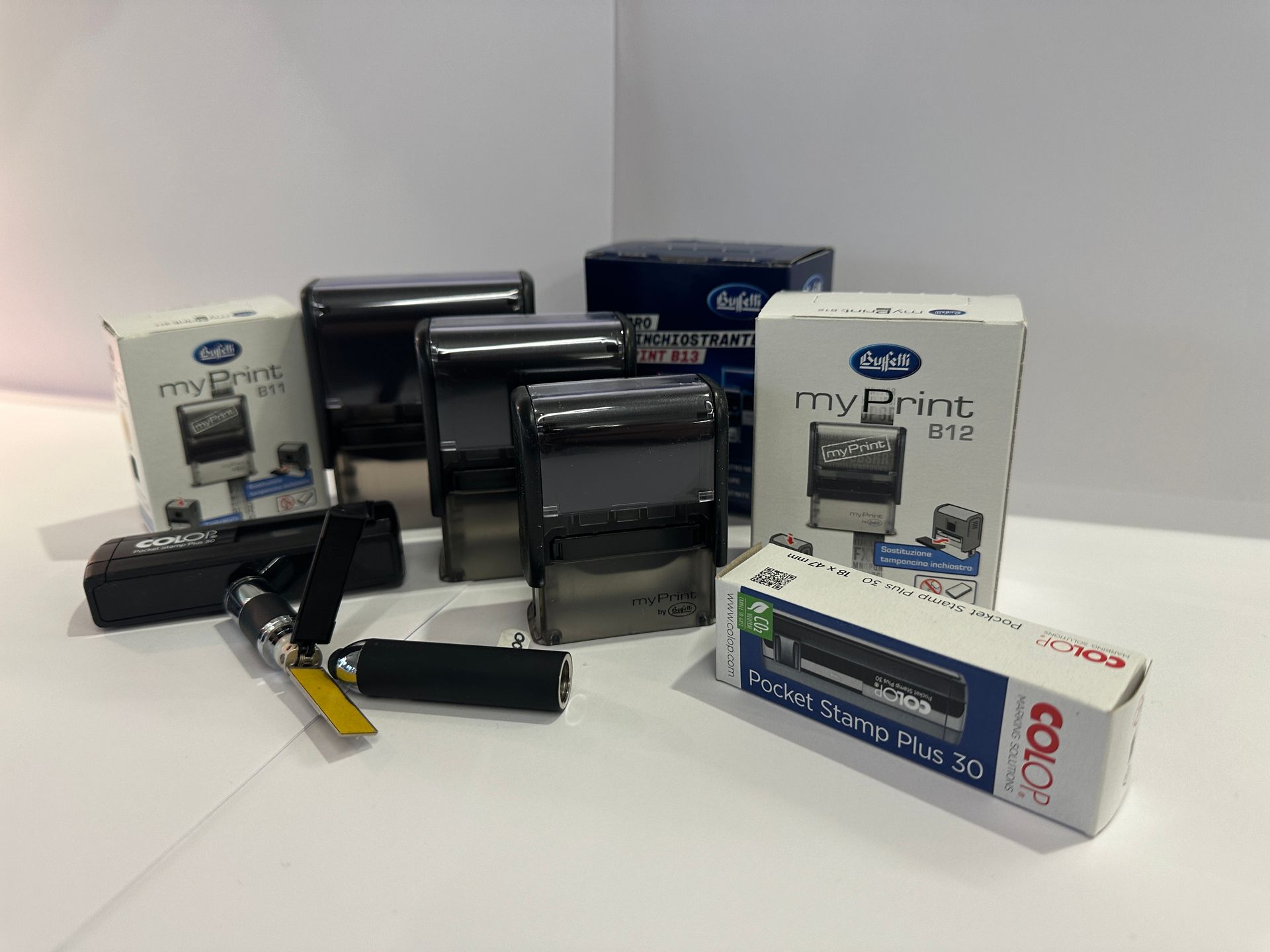 Calcolatrici, gestione denaro, misuratori e stampanti fiscali, etichettatrici e prezzatrici, plastificatrici e rilegatrici, distruggidocumenti, purificatori d’aria, stampanti.